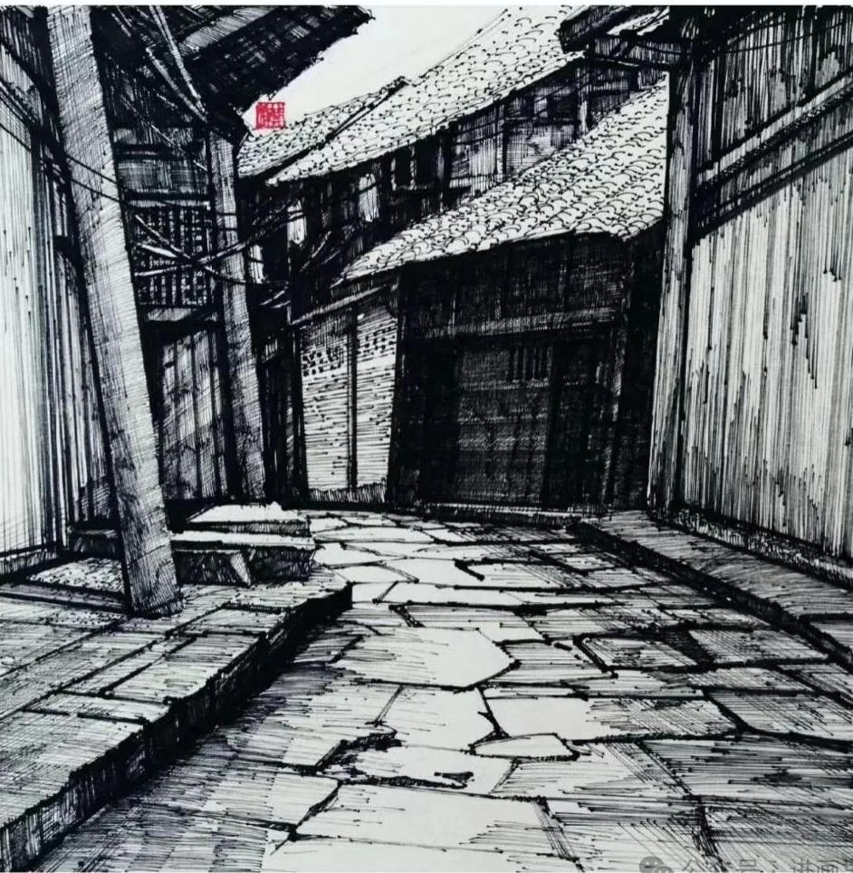 游走于黑白的线条,是罗进教授与外面世界对话的方式,黑白瞬间:乡村旧巷,市井茶馆,风景与静物……收进笔尖,有景得记。