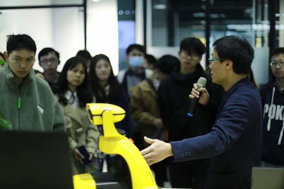 重庆浪尖渝力科技有限公司(国家级工业设计中心)、重庆阿申特科技有限公司负责人向同学们讲解了设计流程,如何用发现问题、解决问题,然后再到产品的构思草图、建模渲染、效果图制作、产品最终落地走向市场等等事项,各方面都介绍得很详细,使同学们从多个角度了解企业是如何进行工业产品设计。企业人事部集中向同学们宣讲了企业文化、岗位要求和工资待遇等。同学们积极咨询设计细节、交流产品CMF工艺、观摩优秀案例。