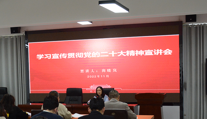 向晓岚书记紧扣党的二十大报告原文,重点围绕党的二十大的重大意义、大会主题和主要成果、过去5年的工作和新时代10年的伟大变革、开辟马克思主义中国化时代化新境界、以中国式现代化全面推进中华民族伟大复兴、全面建设社会主义现代化国家的目标任务、坚持党的全面领导和全面从严治党、以斗争精神应对风险挑战等方面,对党的二十大精神进行了全面深入宣讲阐释。