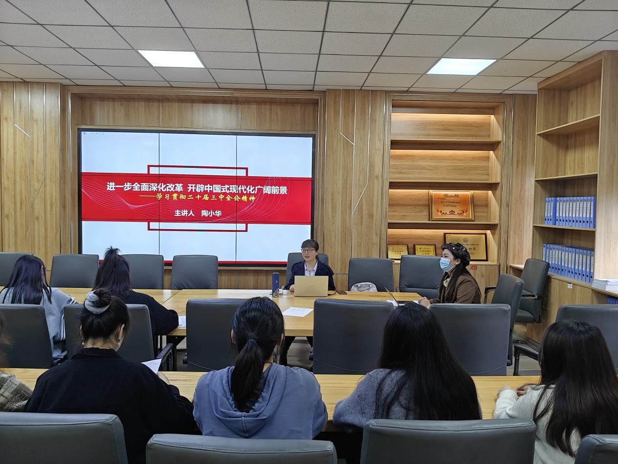304永利集团有限公司公司党总支于2024年10月12日下午14:00-15:00在公司艺术楼208党员活动室开展了由马克思主义公司陶小华老师主讲的“进一步全面深化改革,开辟中国式现代化广阔前景”组织生活会议。