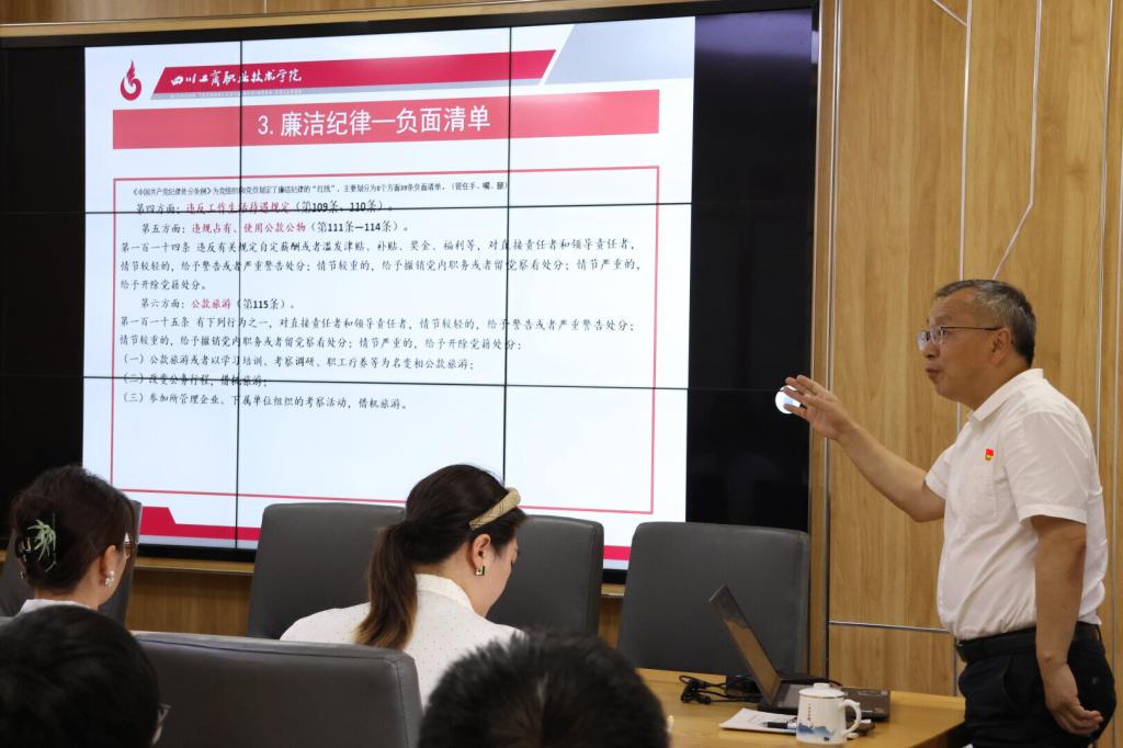 按照公司党委党纪学习教育工作部署要求,为深入学习贯彻习近平总书记关于全面加强党的纪律建设的重要论述和党的二十大精神,推动党纪学习教育走深走实,2024年6月25日,公司党总支在艺术楼208会议室召开党纪学习教育专题会议,公司党总支全体党员参加会议,公司党委副书记、经理邓春生到会领学。会议由党总支书记黄志刚主持。
