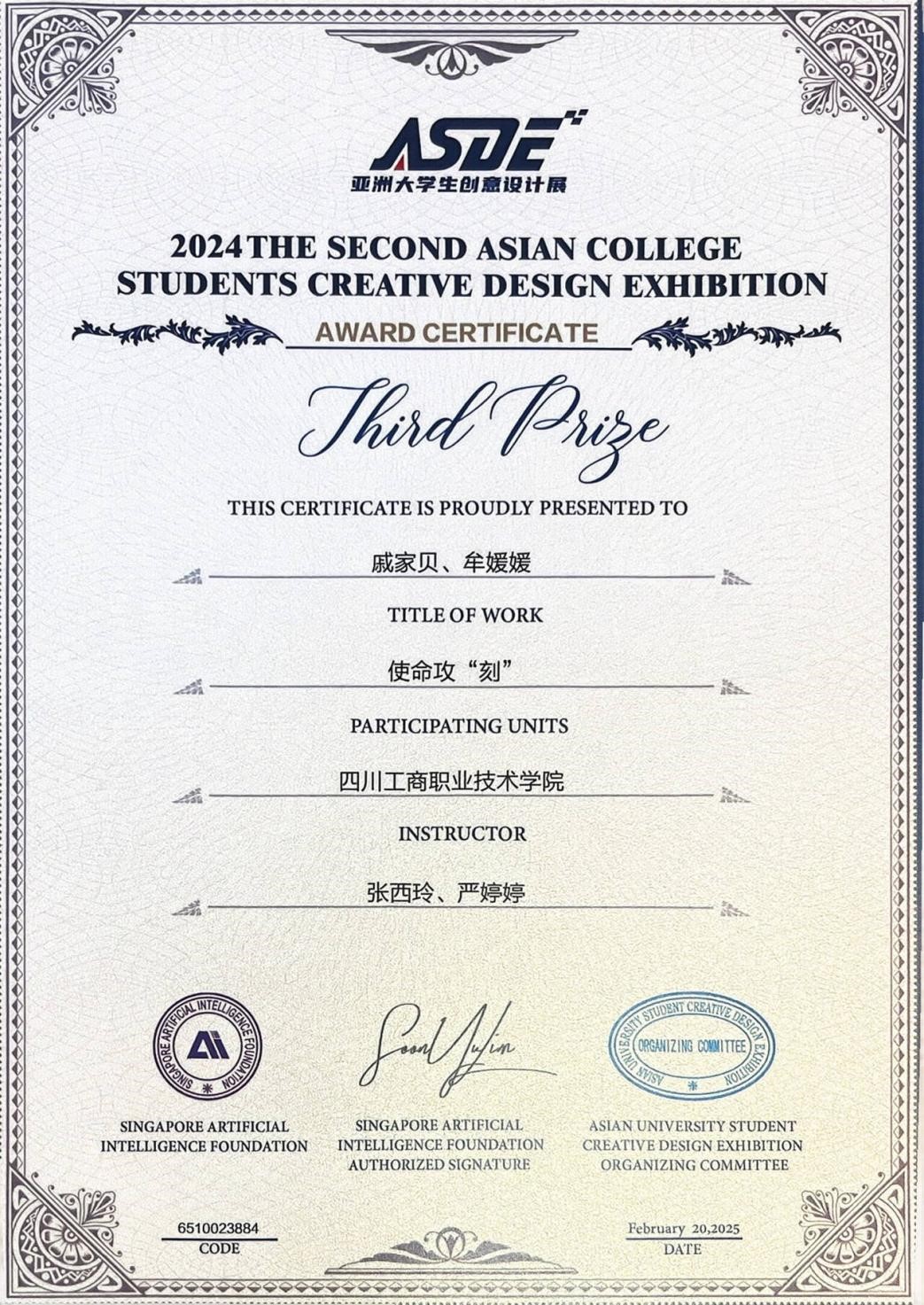 据悉,本赛事面向亚洲国家的专业设计师、设计机构及艺术院校的艺术专业和设计专业师生开放作品征集投稿,竞争激烈,水平极高,本次作品能够获奖充分体现了本专业“岗、课、赛、证”融通的教学特色与成果。