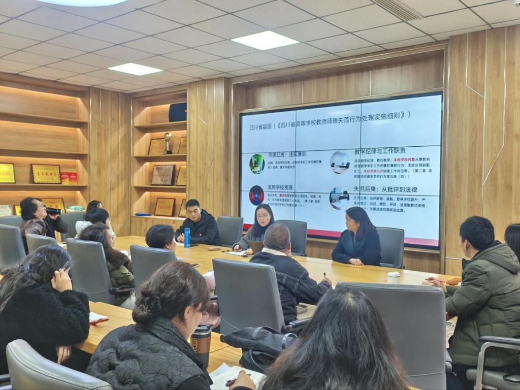 会议紧扣高校教师师德师风建设的系列政策要求,重点解读了《新时代高校教师职业行为十项准则》《事业单位工作人员处分规定》《四川省高等公司教师师德失范行为处理实施细则》及公司《教师师德失范行为处理办法》等文件。